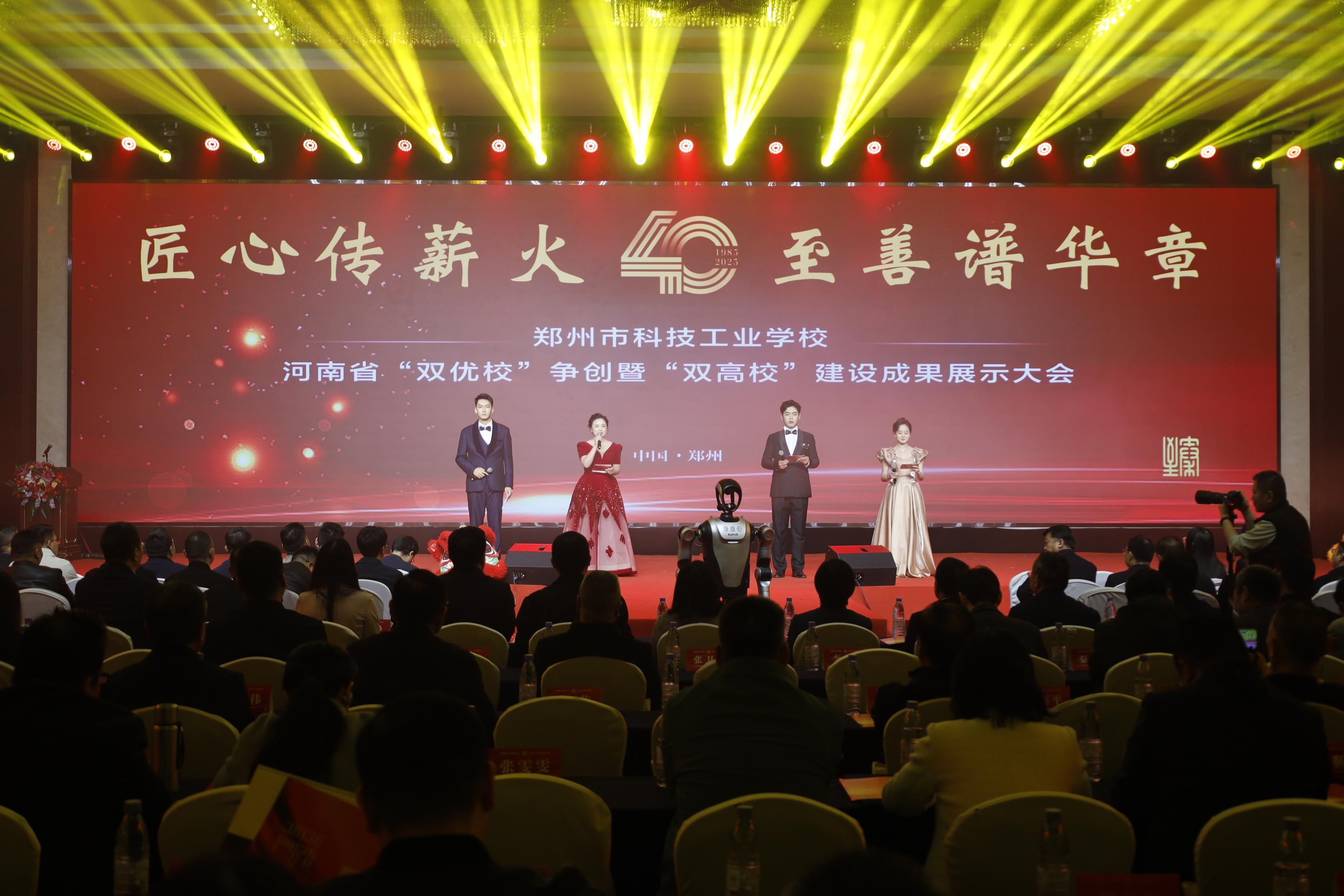 大河网讯 四秩芳华,匠心筑梦。11月15日,郑州市科技工业学校迎来建校四十周年华诞,学校举行河南省“双优校”争创暨“双高校”建设成果展示大会。河南省市县(区)教育部门领导、高校及企业代表、校友师生等千余人齐聚校园,数万名观众通过线上直播共襄盛举。